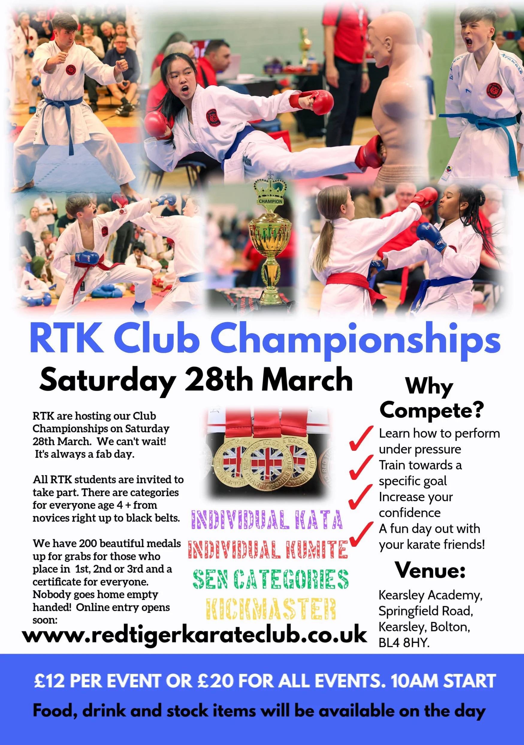 Individual Kata, Individual Kumite, Pairs Kata and Kickmaster